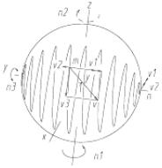 要實(shí)現(xiàn)正弦波研磨軌跡,可以根據(jù)研具和工件的相對(duì)運(yùn)動(dòng)關(guān)系來(lái)實(shí)現(xiàn)。將研具和工件的相對(duì)運(yùn)動(dòng)分解為3個(gè)運(yùn)動(dòng),即研具的轉(zhuǎn)動(dòng)n1、雙偏心半球閥閥芯的轉(zhuǎn)動(dòng)n2和閥芯的擺動(dòng)n3。為使研具在研磨中有較好的嵌砂性能,將研具放在工件的下面,如圖1(a)所示。當(dāng)閥芯按正弦波規(guī)律擺動(dòng)時(shí),磨粒軌跡為類似于振動(dòng)衰減的正弦波,如圖1(b)所示。若閥芯只作正弦波規(guī)律往復(fù)擺動(dòng),其磨削、磨損、去除材料量等產(chǎn)生嚴(yán)重不均勻,雙偏心半球閥閥芯的面輪廓度、表面粗糙度就很難達(dá)到均勻一致,不能滿足要求。為解決此問(wèn)題,讓閥芯有一轉(zhuǎn)速n2,不斷變動(dòng)其自身位置,以保證整個(gè)球面的研磨、磨損等達(dá)到均勻一致,研磨軌跡如圖1(c)所示。
